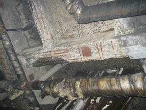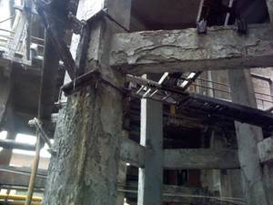 廠房的生產車間內多數都有腐蝕性的液體和氣體,它們在長年的化工生產使用中,滲入到混凝土構件內,導致鋼筋銹蝕,銹蝕層體積膨脹,而將混凝土脹裂。嚴重影響結構的耐久性和安全性。
